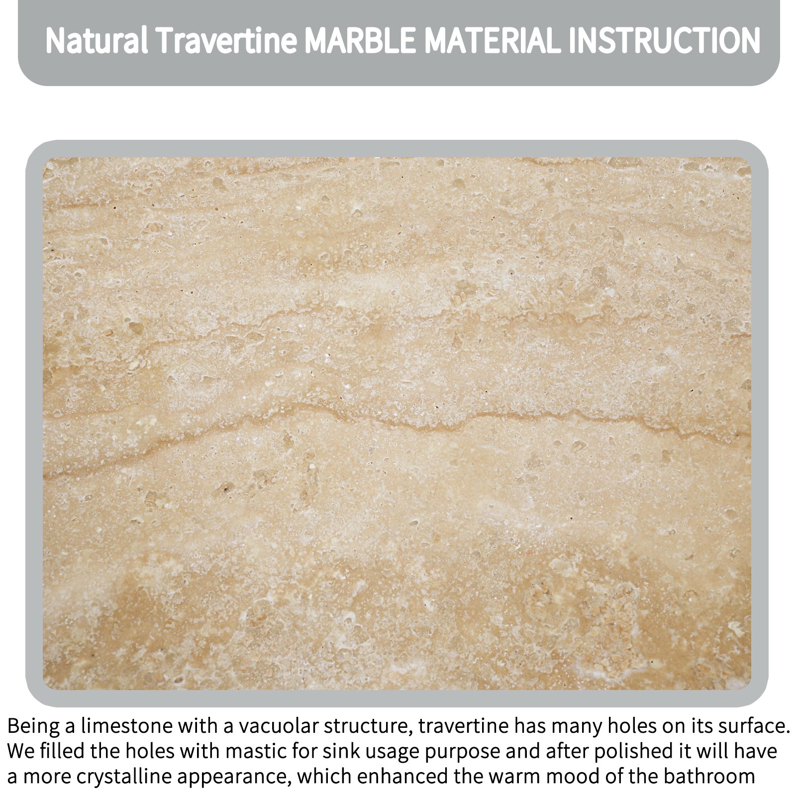 Upgrade your space with this natural travertine marble vessel sink—where timeless design meets unmatched functionality.