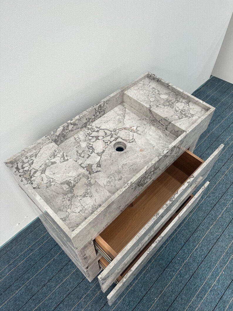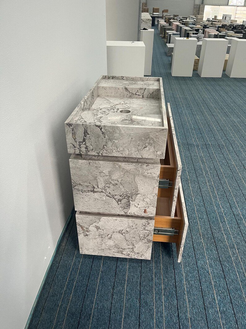 A: Yes — this vanity features genuine Calacatta-style marble with natural veining. Exact quarry origin may vary, but all stone is 100% natural.