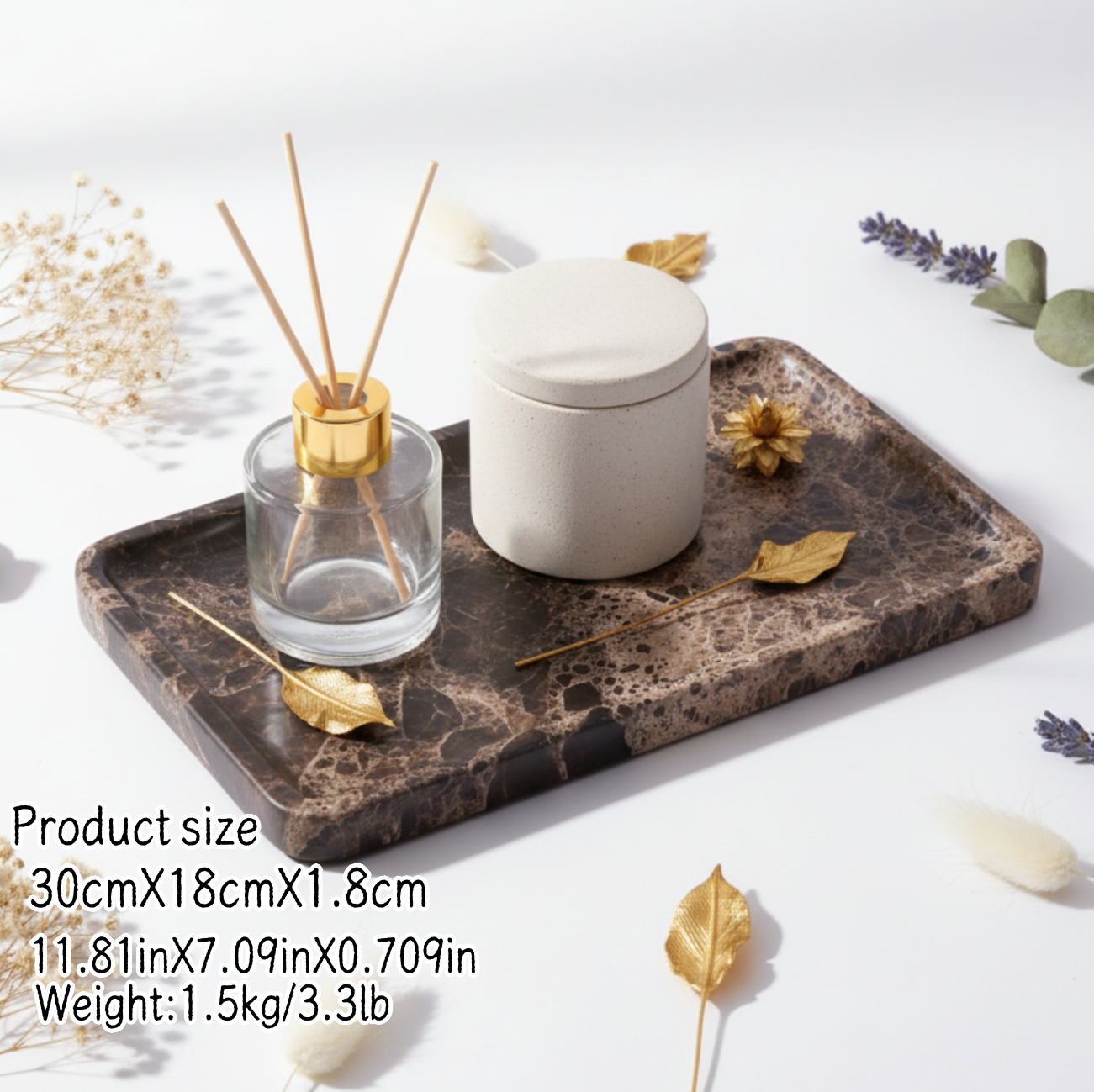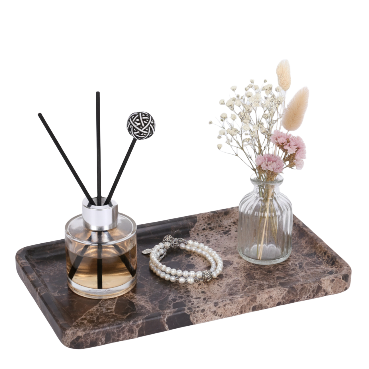 ✅ 1 x Deep Brown Natural Marble Tray (~12″ x 6″ x 0.7″)