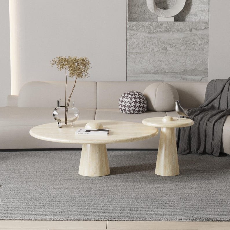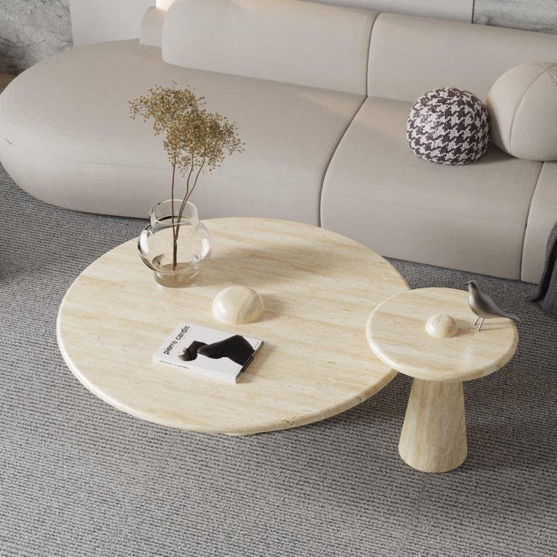 Be the first to review “Travertine Coffee Table Set with Mixed Bases | Modern Stone Design”